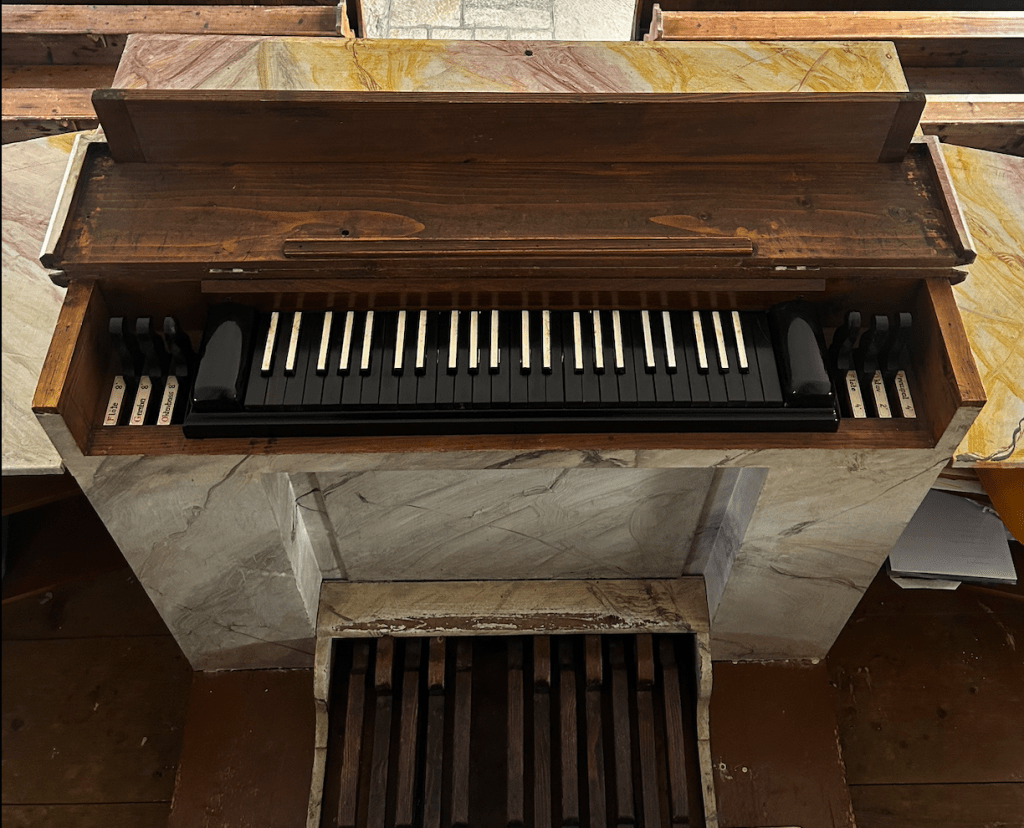 Die mit einem Manual (Hand-Klaviatur) ausgestattete Orgel verfügt über sechs Register.